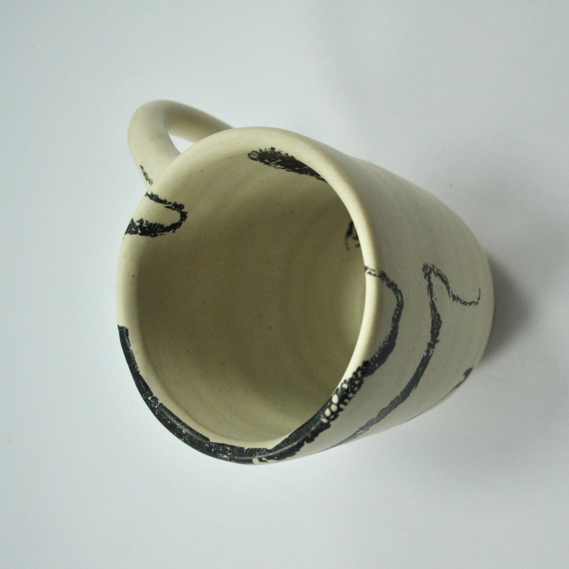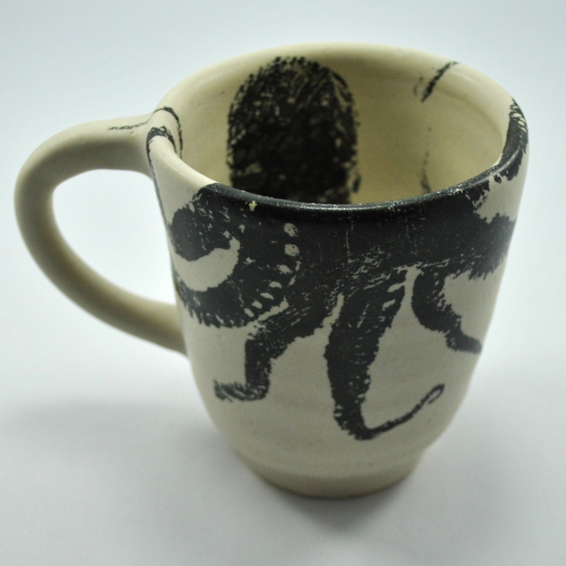 Each mug is made by hand, one by one. Subtle variations and organic imperfections make every piece unique — a reflection of slow craftsmanship and the beauty of authenticity. The black octopus print is both elegant and raw, echoing DAMAR’s connection to gyotaku, the ancient Japanese technique of fish printing.