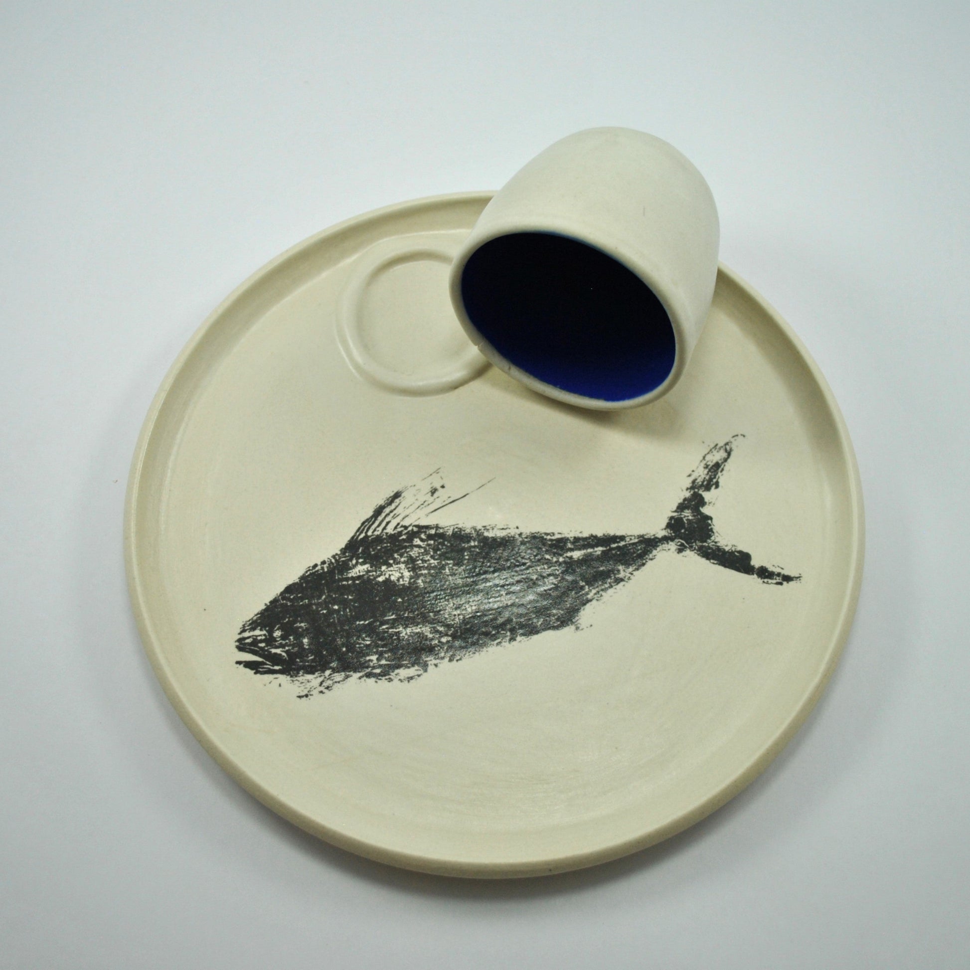 Part of DAMAR's professional line, each piece is mold-made for consistency and durability, offering a clean, minimalist aesthetic rooted in tradition and oceanic artistry. Inspired by the ancient Japanese gyotaku technique, the fish print celebrates the sea and the simple joys it brings into everyday life.